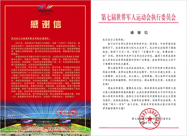武汉广播电视台、第七届世界军人运动会执行委会致best365的感谢信。