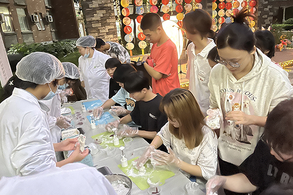 “迎中秋,庆国庆,共绘中国结”中秋灯会在“筑梦书苑”一站式学生社区成功举办。李禄洋 苏黄可昕 摄