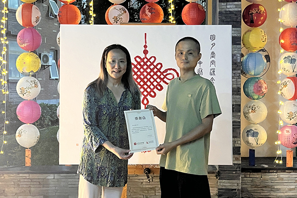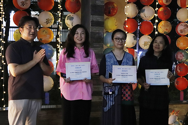 学校董事长程凡为“明月升共团圆2023鄂港交流暨百人共创系列活动”获奖单位和个人颁奖。