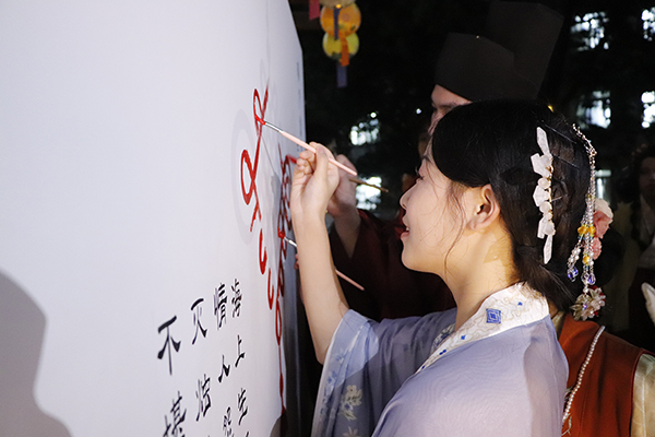 夜幕降临,华灯初上,又是一年花好月圆时。“筑梦书苑”社区广场精心布置的中秋彩灯,营造出浓厚的传统中秋节日氛围。伴随着悠扬的古琴弹奏、民谣演唱,师生从自制冰皮月饼中寻觅佳节之味,从糖人糖画中感受生活甜蜜;灯会活动还特别精选了投壶游戏、花艺团扇制作、彩灯制作、猜灯谜等具有传统代表性的文化活动让师生们沉浸其中;不少身着传统汉服的学生纷沓而来,为灯会现场更添浓浓古韵。