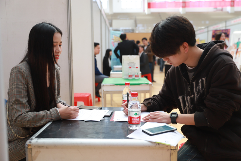 上午10点不到,国贸1402班的阮志已经在招聘会现场投递了四份简历,他告诉记者,得知学校举办春季供需见面会,他提前在网上做了不少功课。“主要是了解用人单位的企业背景、招聘要求、薪资待遇、发展前景等。”阮志说,在就业指导老师和辅导员的指导下,自己已经做好充分准备,积极争取、理性就业。