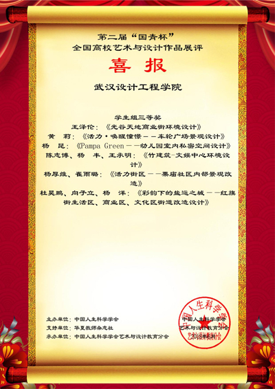 本网讯 近日,由中国人生科学学会主办、中国人生科学学会艺术与设计教育分会承办的“国青杯”全国高校艺术与设计作品展评大赛中,best365环境设计学院环境设计系师生荣获了14项大奖。