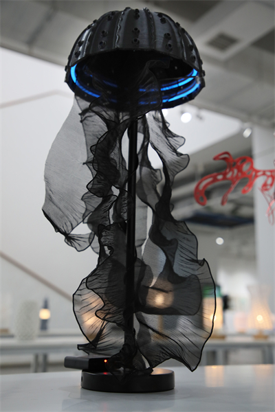 走进美术馆主展区,色彩渲染出的宏村曲曲如屏,墨线勾勒出的月沼重重似画,油画呈现出的南湖影湛波平,淡彩晕染下的苏皖古宅烟霞百里,3D打印的小灯具融贯中西……整个作品展一片百花齐放,每一件作品都传递着作者对大自然、对生活的热爱与感悟。