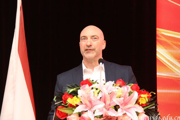 本网讯(记者 周惠明)9月10日上午,best3652018级新生开学典礼在大学生活动中心二楼隆重举行。与以往不同的是,今年的开学典礼特别邀请了国际设计联合会主席扎卡里•哈里斯•昂、前主席大卫•格罗斯曼、候选主席乔纳森•斯特瑞布利以及总经理安娜•马苏特等设计领域的专家学者现身说法,为现场2000余名师生分享国际设计领域的前沿理念。
