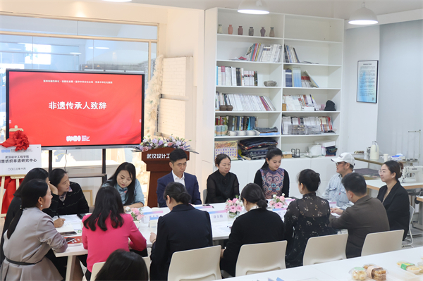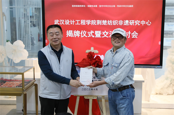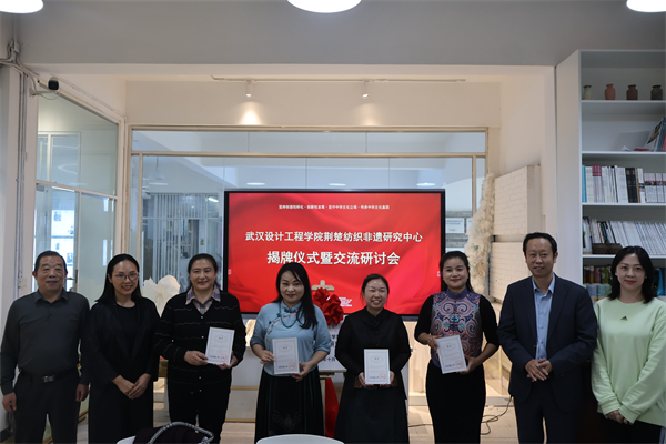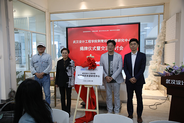 学校董事长程凡、党委书记冉春桃与中国服装协会上海办副主任侯亮、湖北省非物质文化遗产研究中心主任张昕教授共同为中心揭牌。