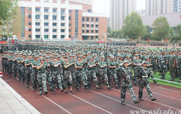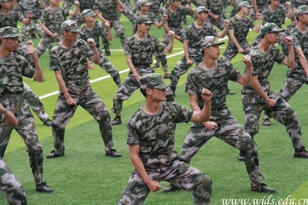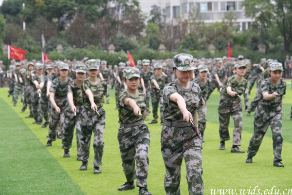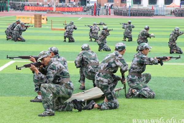 接着,大会进行军训科目汇报表演。男兵方阵向全校师生展示了威风凛凛的军体拳,他们喊着响亮的号子,一招一式刚强有力,尽显男儿英勇本色。女兵方阵以一套气势磅礴的匕首操亮相,她们动作利落、出手果断,一展“巾帼”风采。