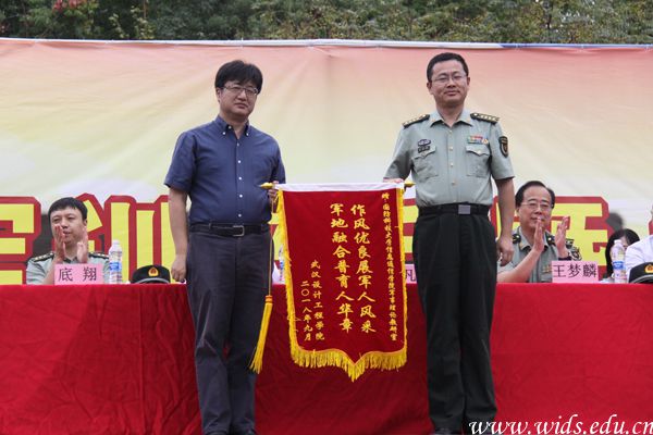 程凡代表学校向国防科技大学信息通信学院赠送锦旗。刘恒 摄