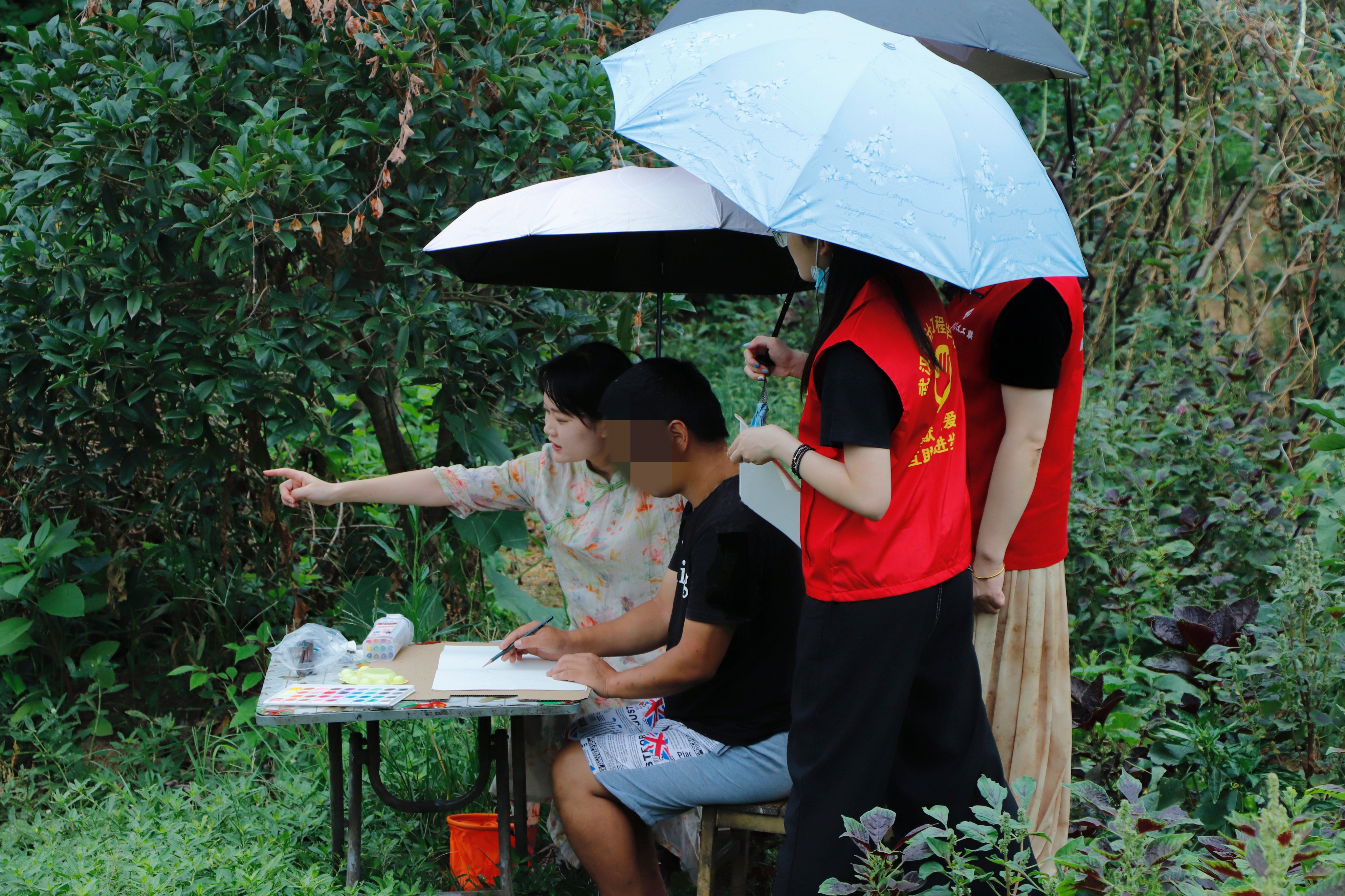 “用爱治愈 创艺赋能”实践团带领服务对象户外写生。