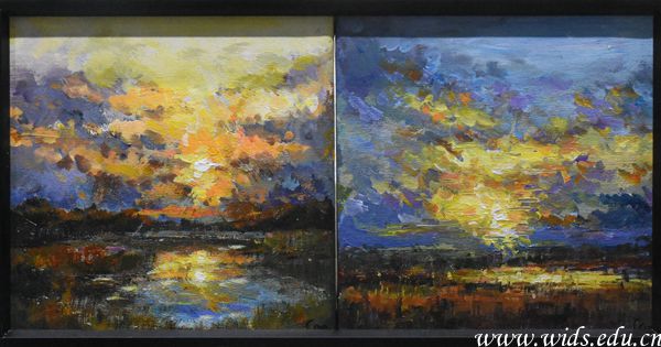 青年教师胡凯油画作品《霞光中的回忆》。刘恒 摄