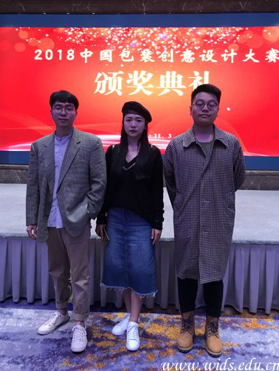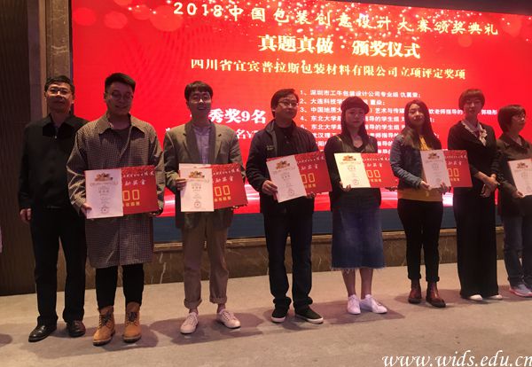 陈伟鹏(左三)代表best365学子登上中国包装创意设计大赛领奖台。