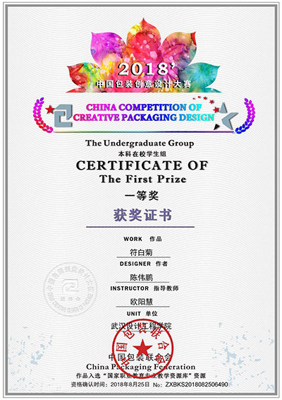 今年8月,由中国包装联合会主办的2018中国包装创意设计大赛开始征集作品,陈伟鹏携《符白菊》参赛,与来自全国各地高校、企业、工作室的数千件包装设计作品同场角逐,经数轮评选,最终荣获一等奖。
