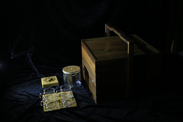 除此之外,他还从民间狗皮膏药中获得灵感,将福白菊磨成粉,填充在特制的小型膏药上,尝试用菊花的清火解毒功效祛痘,为此还特地仿照“八卦图“制作了一套使用说明。整套产品的外包装则设计成古香古色的木制食盒形状,并从积木玩具中得到启发,将盒内隔断制作成大小不一的活动木块。“茶包用完后,用户可根据喜好重新组装,另作他用。”