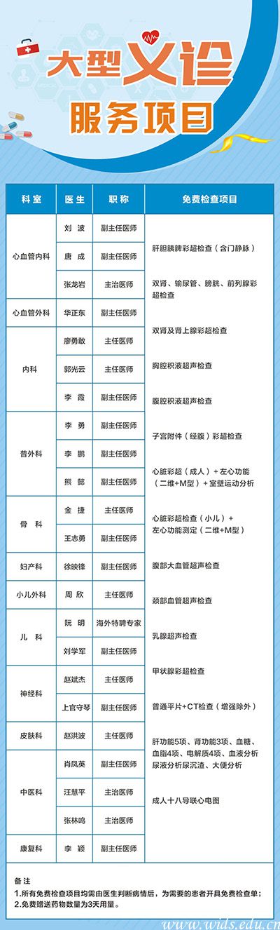 ②心脏彩超、腹部超声、子宫附件、CT(不含增强)检查、血液检查等多项检查检验项目全部免费