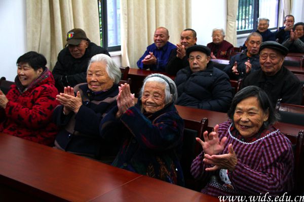 老人们兴高采烈欢迎学生们的到来。鲍坤 摄