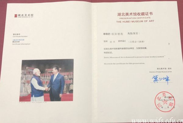 湖北美术馆收藏证书。