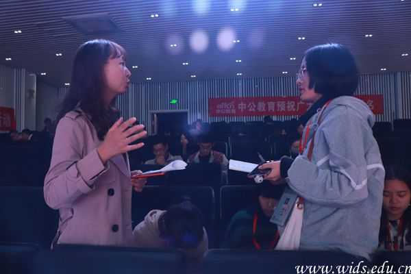 蔡婷到台下与学生互动,解答学生疑虑。