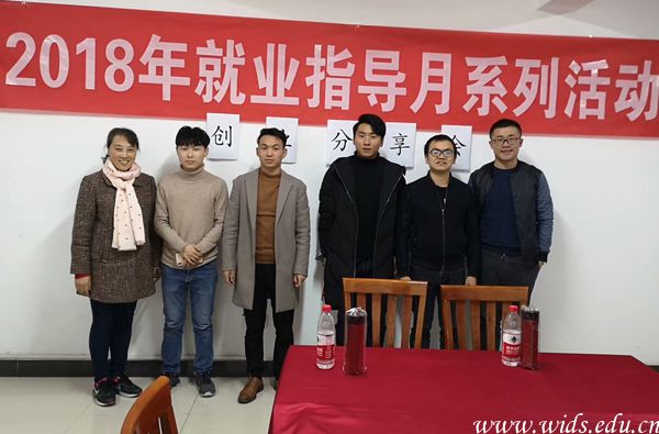 招生就业处老师与创业毕业生合影留念。