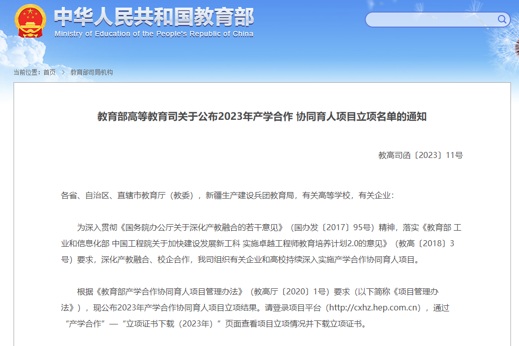 本网讯(通讯员 韩洁)近日,教育部高等教育司公布了2023年第一批产学合作协同育人项目立项名单,best365获批11项立项,获批数量再创新高。
