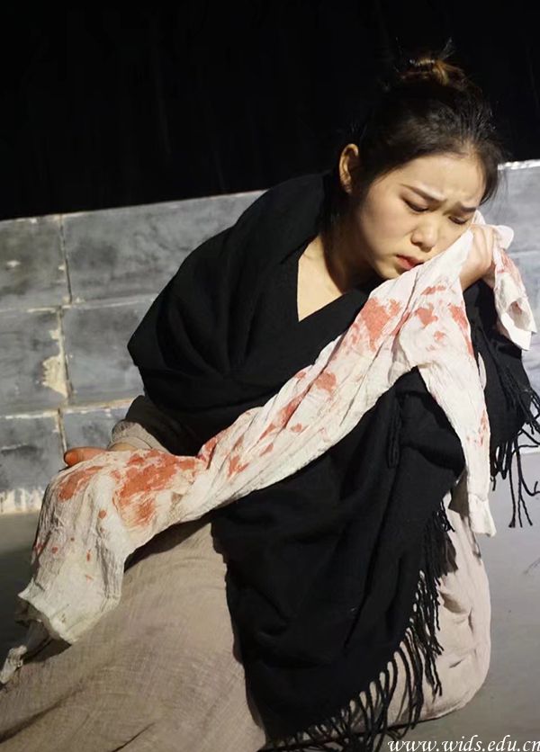 说起作品的改编,王娟向记者谈到,原本他们是为了准备上学期《国外戏剧》课程的汇报表演,经过讨论、请教老师,他们将剧本压缩到半小时之内,重点演绎两人在树林里寻找尸体这一剧情冲突最激烈的部分。为了更加凸显原剧中母亲梅加的复杂情感,他们大胆尝试,用两名演员分饰母亲梅加,一位满腔仇恨,另一位饱含悲悯和宽容。经过多次修改、反复排练,作品在课程汇报表演中取得了很好的效果。