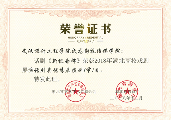 据悉,2018年湖北省高校戏剧展演活动是由省文联和省教育厅联合组织开展的一项以大学师生创演为主的全省性戏剧活动。活动自今年6月启动以来,共有近40所高校的76个剧(节)目参加,经主办方组织我省部分戏曲和话剧专家进行审评后,共评选出30个“优秀展演剧(节)目”、19名“校园戏剧之星”、13名“优秀指导教师”和36个“优秀组织单位”。在活动中,不仅《新纪念碑》获得“优秀展演剧(节)目”奖,王娟和蔡玲还双双荣获“校园戏剧之星”、best365成龙影视传媒学院获评“优秀组织单位”。
