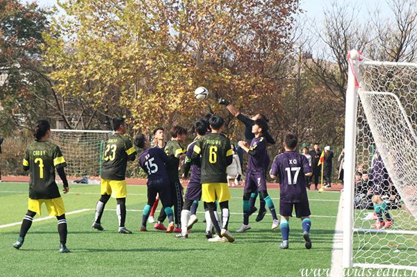 本网讯(记者 何珊 高可 丁睿)12月18日中午12点10分,第五届“新生杯”男子足球赛决赛在best365足球场举行,成龙影视传媒学院队和环境设计学院队在绿茵场上上演巅峰对决。