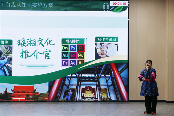 “就业赛道”选手朱晓云向评委展示瑶族的独特风俗文化。李禄洋 摄