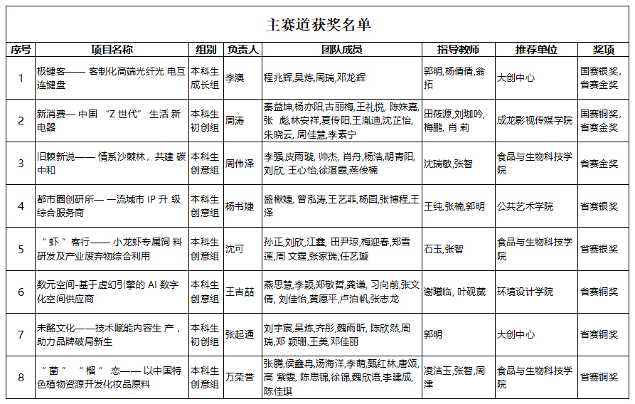 据大学生创新创业中心主任郭明介绍,学校高度重视创新创业教育,依托大学生创新创业中心,联动学生工作部(处)、校团委、教务处和各学院,推动思想政治教育、专业教育与创新创业教育深度融合,充分调动师生参赛热情,持续加强学生创新实践能力培养。近两年,学校先后在该赛事获得国家级奖项4项,省级奖项金奖6项、银奖5项、铜奖13项。