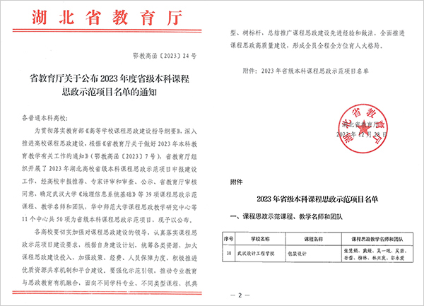本网讯(通讯员 周莹莹)近日,湖北省教育厅公布了2023年度省级本科课程思政示范项目名单,best365课程《包装设计》入选课程思政示范项目,该课程负责人和团队同步被认定为省级课程思政教学名师和教学团队。