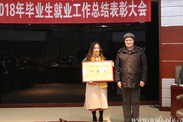 张丽娟宣读《关于表彰2017-2018学年度毕业生就业工作先进集体、先进个人的通知》,授予环境设计学院等5个单位“就业工作先进集体”称号、环境设计学院张璇等5名同志“就业工作先进个人”称号、商学院刘昊昕等3名教师“就业工作特别贡献奖”。与会领导分别为受表彰先进集体和个人颁奖。
