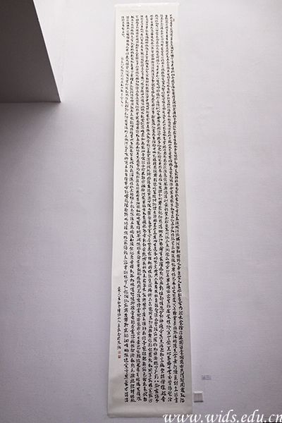 活动现场展出了吴顺心、陈飞、欧阳德彪、陈顺安、柯锡安、谢跃等人的油画、雕塑和书法作品共计二十余件。引人注目的是一幅长约四米的书法作品《千字文》,据介绍,这一作品是艺术家陈冲用一整天时间一气呵成的,从字体大小、落笔力度、整齐程度足以见得功力深厚。