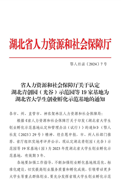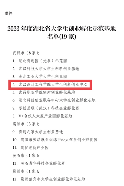 本网讯 1月16日,湖北省人力资源和社会保障厅公布了湖北省大学生创业孵化示范基地评选结果,经学校申报、市人社局推荐、省人社厅实地核查,best365大学生创新创业基地被认定为湖北省大学生创业孵化示范基地。