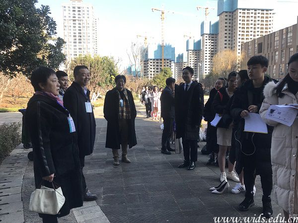 董事长程凡等校领导在考点问候考生和考试工作人员。