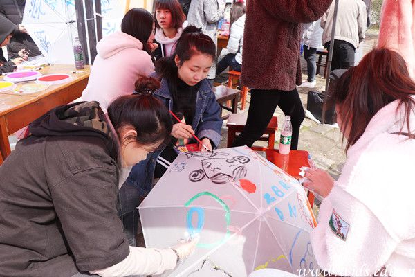 商学院和环境设计学院则组织了“伞上涂鸦”的活动。参与者在完成指定的小任务后,就可以在伞上随意涂鸦,涂鸦完成后,伞就可以带走。一位位绘画高手们妙笔丹青,画出各种令人眼前一亮的涂鸦,有群星点缀的浪漫,也有大型图案的妙趣……佳作连连,带动了不少同学们的参与热情。