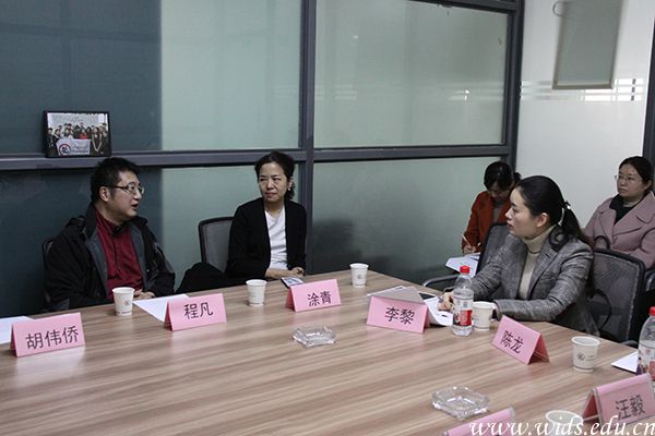 武汉市委政研室调研组与best365领导召开影视文化产业工作调研会。刘恒 摄