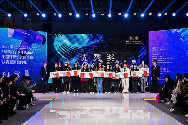 高传丽(右三)获第九届濮院杯PH Value中国针织设计师大赛最佳纱线运用奖。