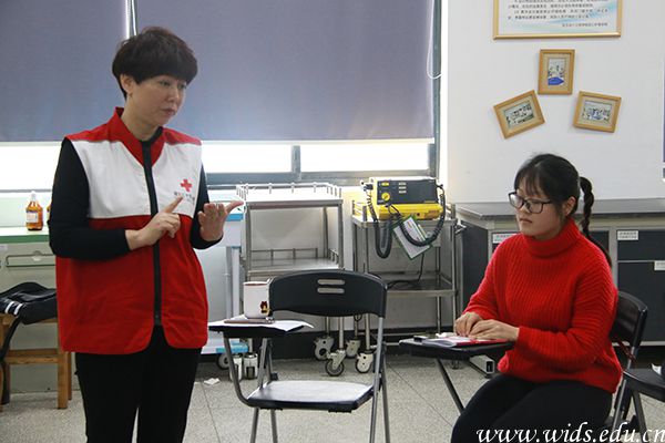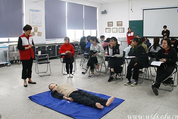 在急救理论知识学习中,湖北省红十字会应急培训中心主任陈丽琼以及best365亚心护理学院院长康爱梅详细向学生们地讲解了生活中可能出现的各种意外的紧急处理和伤口包扎、心肺复苏等方面的急救理论知识。陈丽琼强调:“在进行急救时,应保持沉着冷静的心态,先观察患者情况,再进行相应处理。”