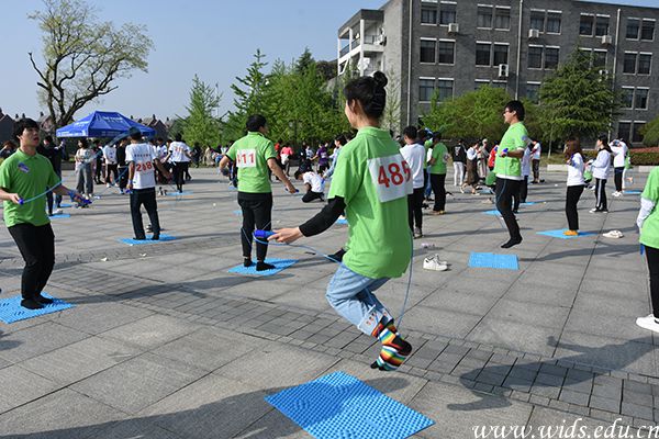 “啊,好痛啊!100个跳不完啊……”这是图书馆广场指压板跳绳障碍点此起彼伏的“嚎叫”声;
