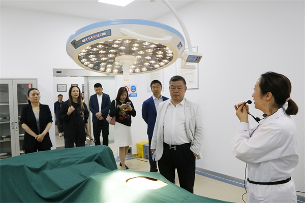 学校董事魏彬向袁祖文一行介绍亚心护理学院基本情况。刘恒 摄。