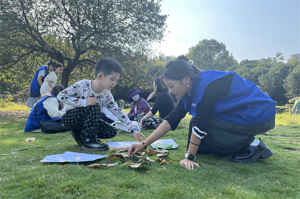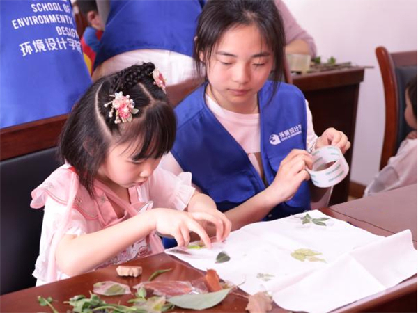 “大自然是教育元素最多、最能激活孩子们求知欲和创造灵感的教学场所,是集各学科知识为一体的活教材。”环境设计学院辅导员、“筑梦”志愿服务队负责教师吴子慧表示,去年3月,“筑梦”志愿服务队与藏龙岛金龙社区结对,签订《武汉社区志愿服务共建协议》,面向社区适龄儿童开设“自然课堂”公益课。在每个周末,志愿者都会来到社区,开展“植物拓染”“寻找色彩”“自然相框”等多主题、多类型的自然观察体验活动,让孩子们亲近自然、享受自然、热爱自然,以自然美启蒙涵养美育教育。
