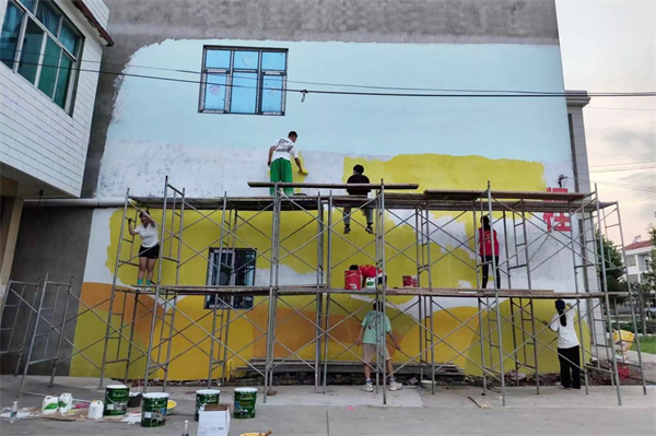 “艺兴乡村”项目,师生们用画笔“扮靓”美丽乡村。