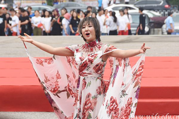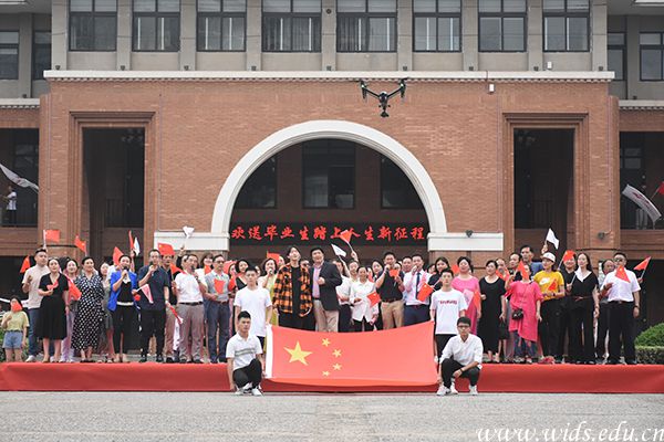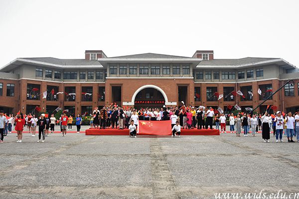 随后,侨文会领导带队演唱《我的中国心》,四名学生迈着坚定的脚步护送国旗走向舞台中心,侨文会全体会员和大学生们一起向国旗聚拢,此时此刻,得一堂大楼所有窗口“快闪”出现一群大学生,他们手举国旗和军运会会旗奋力挥舞,楼上楼下激情四射,澎湃激昂的歌声、鲜艳夺目的旗帜、充满笑容的脸庞,汇集成一幅壮观的图景,为武设的校园增添了鲜活绚烂的色彩。