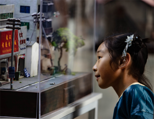 观众驻足观看“武汉往事·经济起航”汉正街影视场景系列模型。