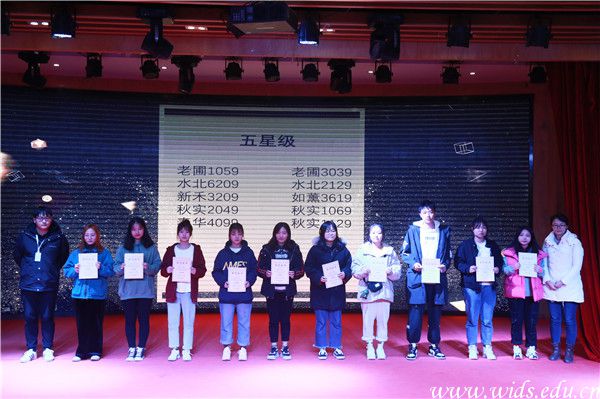 “星级文明宿舍”获奖代表领奖。蔡凯铭 摄