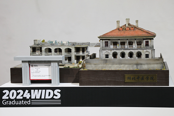 “我们小组有的负责画图建模,有的负责查找相关资料,有的负责上色和组装……”《湖北中医学院》是成龙影视传媒学院学生江南嘉丽、宋毅、田王西子、张明辉、冀杨芊精心制作的场景模型,作品细致地再现了近代西方医院建筑在武汉的历史风貌。建筑内温暖的灯光象征着抗日战争结束后胜利的曙光,渲染出了当时武汉和平向上的社会氛围。正如团队成员宋毅所言:“这所医院建筑不仅是一个时代的特色标志,它还见证了武汉近现代的发展进程。我们希望通过这件作品,向那段历史以及辛勤工作的医护人员表达敬意。”