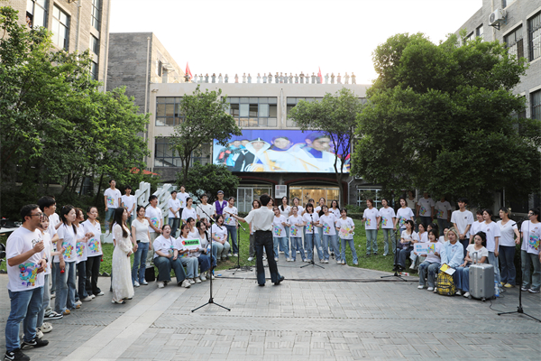 环境设计学院在草坪前温情合唱《如果明天就是下一生》。吴琬雯 摄
