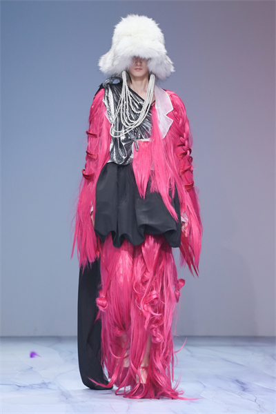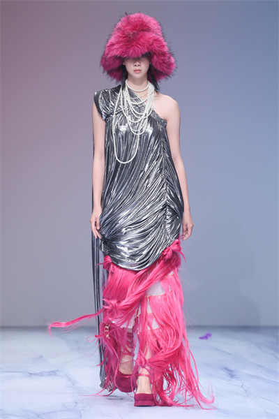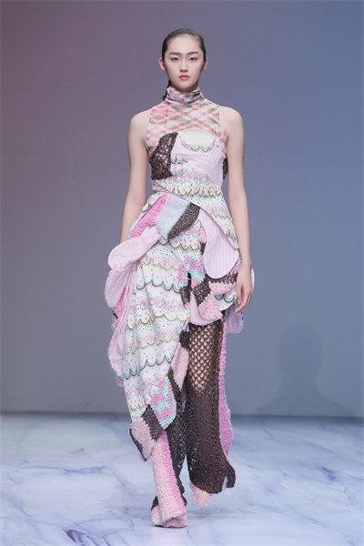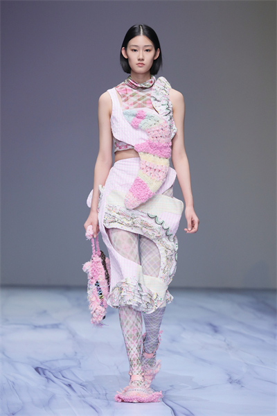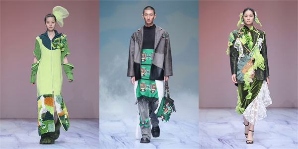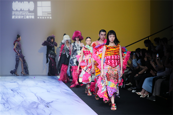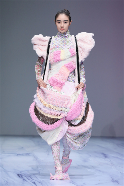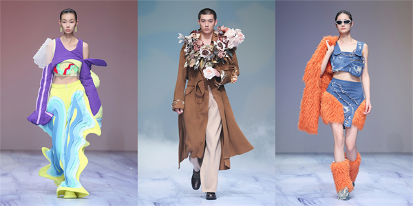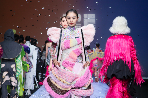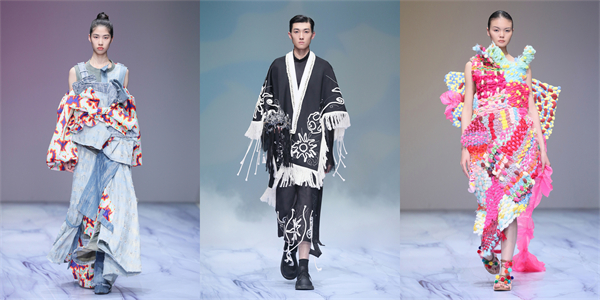 “学生们深入挖掘传统民族文化的审美符号,将古老的工艺与智慧融入现代设计之中,在传承文化精髓中挑战新型材料,探索时尚边界。”付雪介绍,作品着眼于可持续时尚进行面料再造,关注生态问题,践行对环境的责任与关怀。他们用敏锐的感官、迸发的灵感和创造的力量,将自我与自然的联系、个人与世界的思考呈现在作品中,最终以缤纷色彩碰撞与服装解构重组表达内心感性世界,呈现出大胆创意。