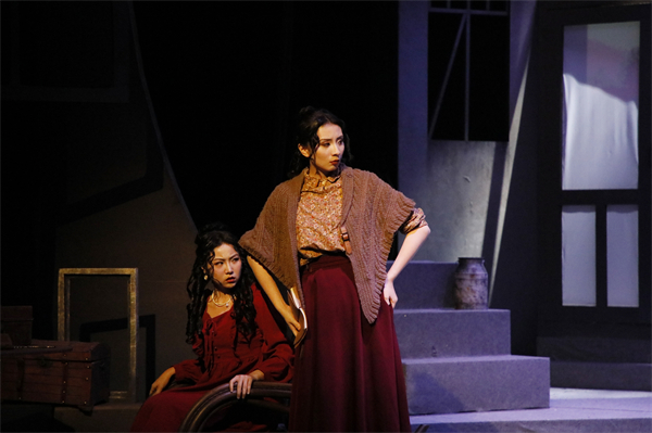 “每位演员的剧本上都有各式各样的标记,有的剧本甚至被翻阅得破破烂烂。每次上台前,我们都是早早来剧场默戏,以尽快进入角色状态,争取将每一句台词、每一个动作都完美呈现。”剧目主演之一、表演2002班班长惠二杨说,为了呈现最完美的舞台效果,剧组24名学生多次集中围读剧本,打磨台词、细化表现方式,确保情节在本土背景中的合理性和可接受性。“故事的节奏把握的很好,人们的真善美、假恶丑就像未干的缤纷的油漆,剧情在‘情理之中’和‘意料之外’当中不断切换,我完全沉浸其中。”现场一位观众表达了对剧目的热切喜爱。