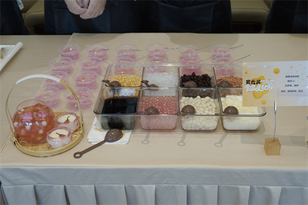 “黄鹤楼饼干”“越王勾践剑”、汤包、冰粉、绿豆汤、钵钵鸡……开幕式结束后,与会嘉宾和师生们移步食品品鉴区,学生们独具特色的创意食品和湖北本地特色小吃一应俱全,深深地吸引了大家尝一尝的兴趣。“这些食品不仅外形美观,还保留了食材原本的味道,避免了过度的甜腻,更好地满足了现代人对健康饮食的追求。”仟吉企业代表刘自力品尝美食后对同学们的创新能力和专业素养给予高度评价。
