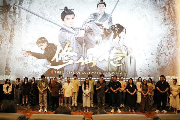 《修仙传》视效导演张炜与主创团队介绍影片视效特色。刘恒 摄