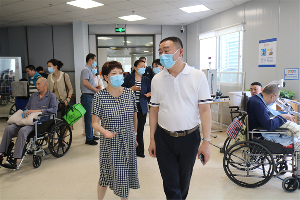 校长龚少平在武汉明州康复医院院长季芳陪同下实地察看武汉明州康复医院的工作环境、学生实习生活场所等。